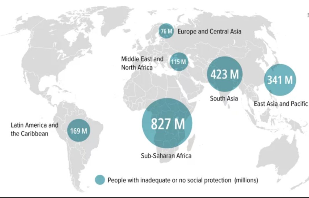 El informe de la entidad cuantifica la brecha existente en los sistemas de protección social (asistencia social, seguro y programas de mercado laboral en países de bajos y medianos ingresos. En este tipo de economías hay alrededor de 6.300 millones de habitantes, pero cerca de 2.000 millones no están cubiertos o tienen cifras insuficientes de cobertura a los sistemas de seguridad social.