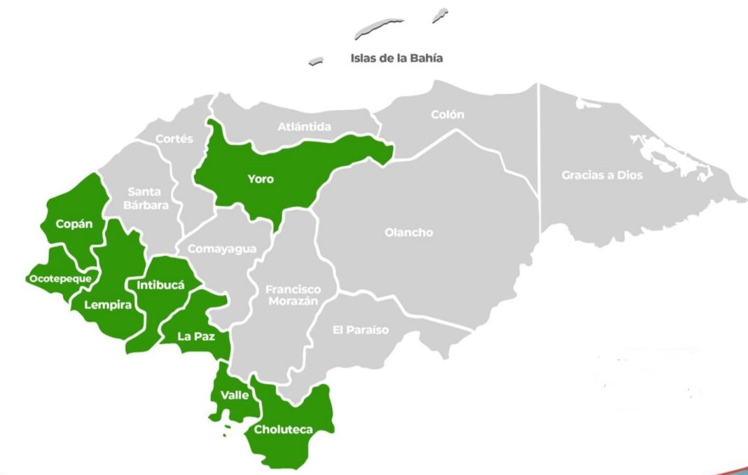 Los departamentos en ese nivel de alertamiento son: Copán, Ocotepeque, Intibucá y Lempira, Yoro, La Paz, Choluteca y Valle.