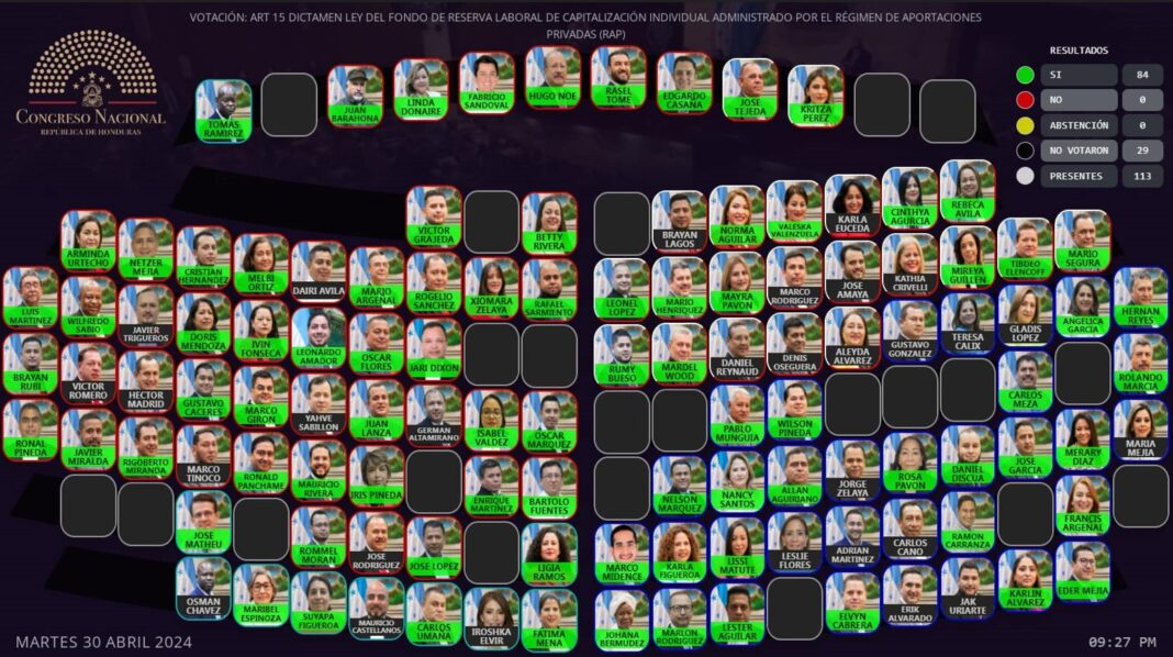 El Congreso Nacional aprobó este martes la Ley del Fondo de Reserva Laboral que será administrado por el Régimen de Aportaciones Privadas (RAP) para trabajadores del sector privado.
