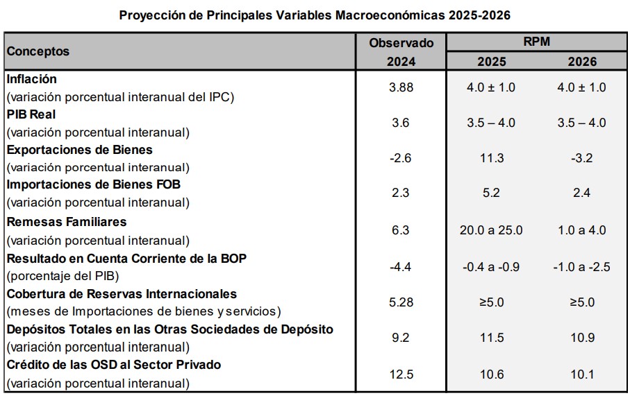 En una revisión al Programa Monetario 2025-2026, el organismo estima que el crecimiento del producto interno bruto (PIB) este año se mantiene, a pesar del aumento de 20 puntos en el ingreso de remesas familiares.