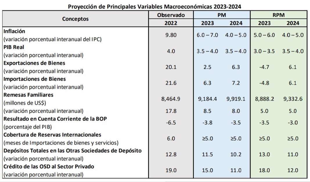 «Al considerar la evolución reciente, los pronósticos indican que la inflación total continuaría desacelerándose a un ritmo más rápido de lo previsto en el PM, a medida que se disipen los choques de oferta externos, acercándose al límite superior del rango de tolerancia establecido por el BCH (4.0% ± 1.0 pp) al cierre de 2023 y convergiendo dentro del mismo durante el primer semestre de 2024».