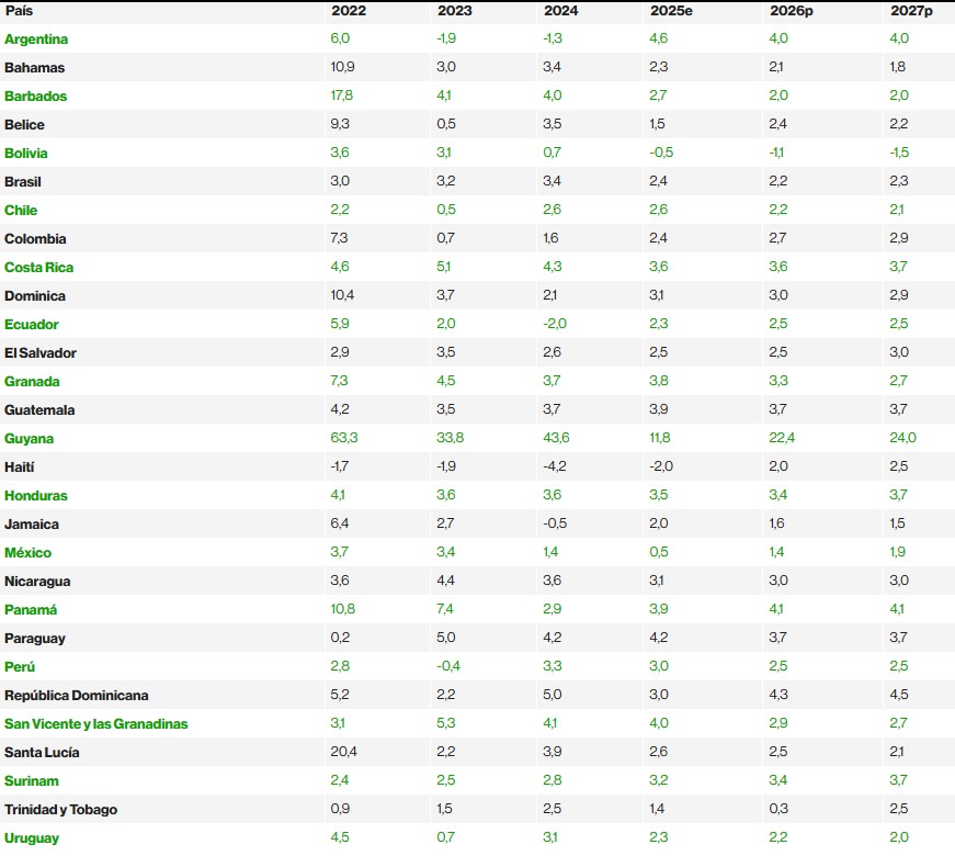 Estas previsiones aparecen en el ‘Informe económico para América Latina y el Caribe – octubre 2025’ que publica este martes el Banco Mundial, que cifra en 2,3% el crecimiento de la economía de la región este año, y en un 2,5% en 2026.