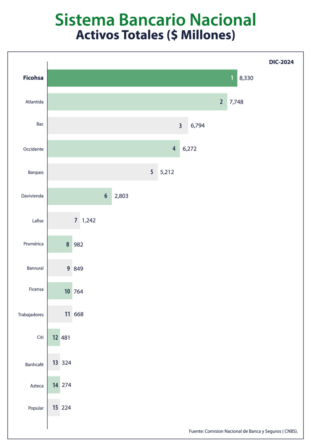 El más reciente informe de la Comisión Nacional de Banca y Seguros (CNBS) ha confirmado nuevamente la fortaleza del sistema financiero hondureño, posicionando a Banco Ficohsa como líder indiscutible en el ranking de activos a nivel nacional. Este logro, que se ha mantenido de manera consistente a lo largo de los años, es reflejo del trabajo comprometido, estratégico y visionario que caracteriza a la institución.