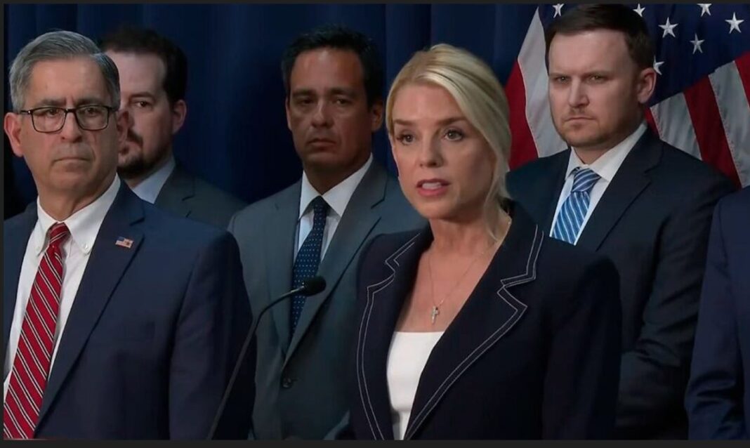 La conferencia de prensa de Bondi, comenzó con una contundente declaración sobre la trayectoria criminal de Ismael “El Mayo” Zambada, a quien calificó como un narcotraficante terrorista internacional.