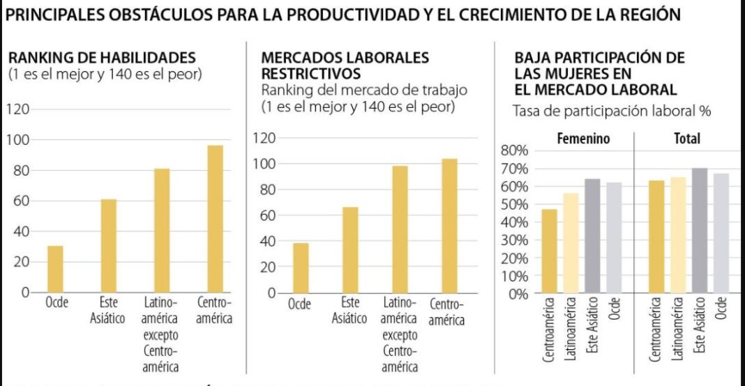 El Banco Mundial insistió en la necesidad de abrir espacios de participación para el capital humano femenino y joven de la región. Según las estimaciones, la participación femenina en Latinoamérica es de 54%, mientras que en Centroamérica es 48%.