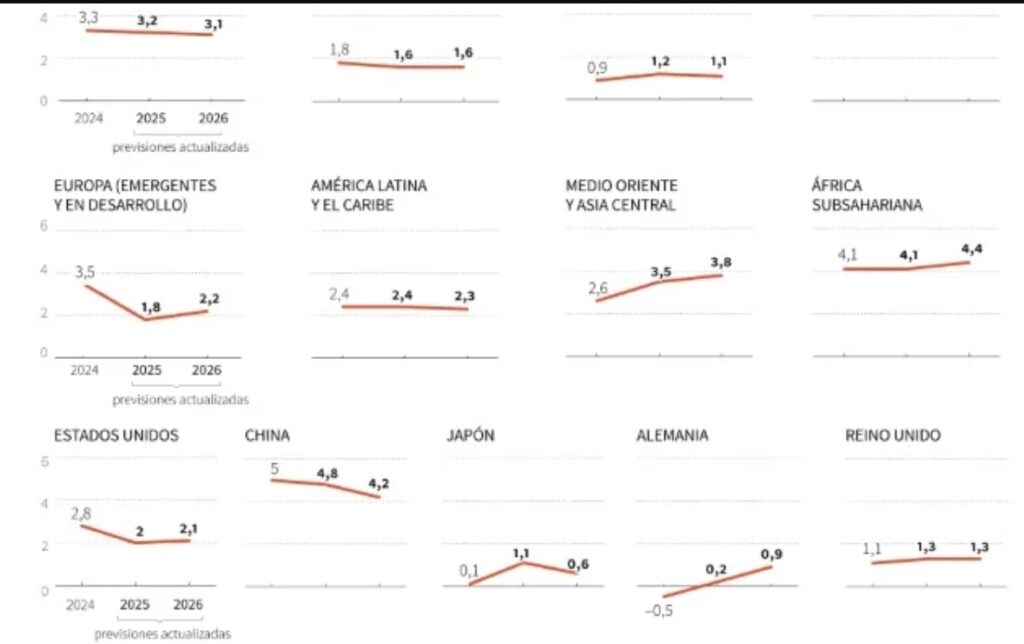 Para India la proyección es del 6,6%, para Japón un 1,1%. Se espera que la economía de Alemania se recupere de la recesión y registre un crecimiento del 0,2% este año.