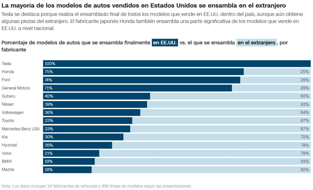Durante décadas, América del Norte ha funcionado prácticamente sin fronteras en lo que respecta a la producción de automóviles, gracias a los acuerdos de libre comercio que permitían la entrada de automóviles y autopartes a Estados Unidos libres de aranceles. En parte, por eso México fue el principal origen de las importaciones de automóviles a Estados Unidos el año pasado.