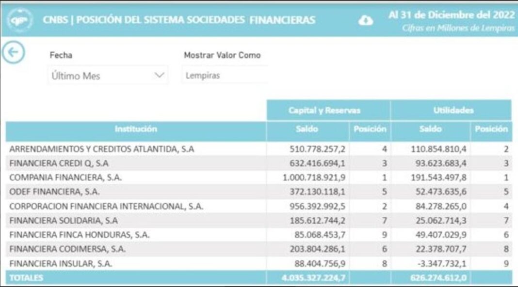 Las Financieras elevaron su cartera de Créditos a 15.200 millones y la de los Depósitos a más de 8.439 millones de lempiras. En 2021 esas carteras sumaban 13.068 y 7.935 millones de lempiras, respectivamente.