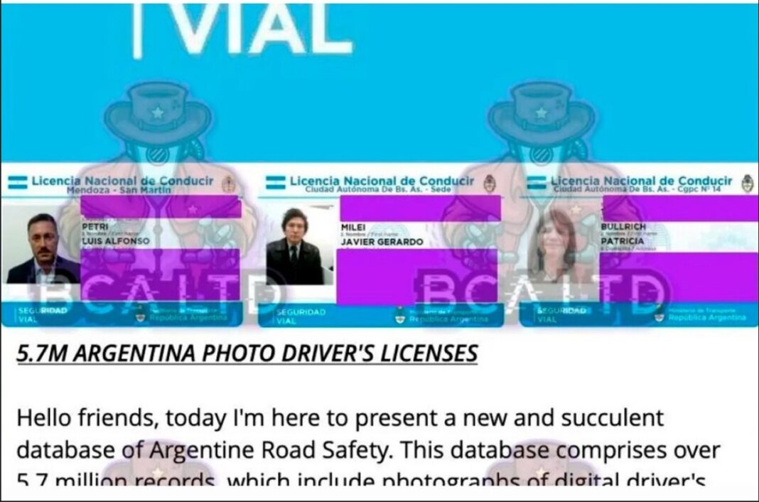 Un grupo de hackers asegura haber robado la base de datos de todas las licencias de conducir del país, y para demostrarlo filtraron las fotos de los carnets del Presidente Javier Milei, y los ministros Patricia Bullrich y Luis Petri.