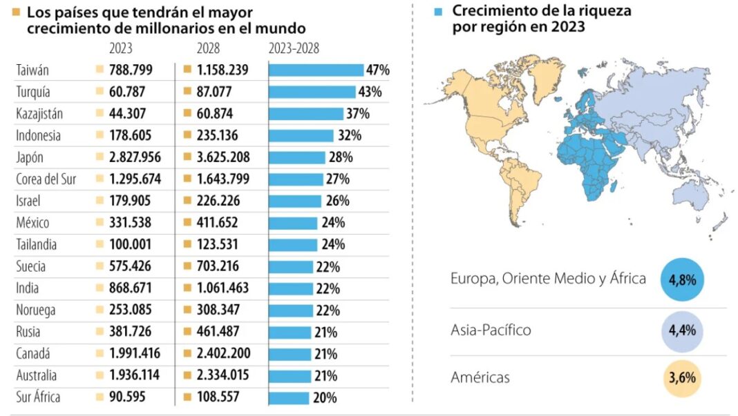 Son, Taiwán, Turquía y Kazajstán los países en donde más aumentarán los millonarios en el mundo según el último Informe de riqueza global 2024 de UBS.