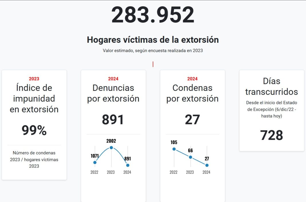 «A dos años de la implementación del estado de excepción (parcial) como parte del Plan Integral para el Tratamiento de la Extorsión y Delitos Conexos, alrededor de 304.000 hogares hondureños continúan siendo víctimas de extorsión, un incremento preocupante de 74.126 nuevos hogares desde el inicio de la medida en 2022», señala el informe de ASJ, bajo el título «Extorsión bajo la lupa: a dos años del estado de excepción’».