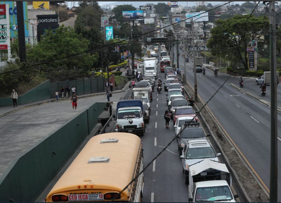 Al menos 26 bloqueos vehiculares se registraron en las principales calles y avenidas de la Ciudad de Guatemala por protestas contra cuatro acuerdos que obligan a los conductores de vehículos a contratar un seguro de daños a terceros.