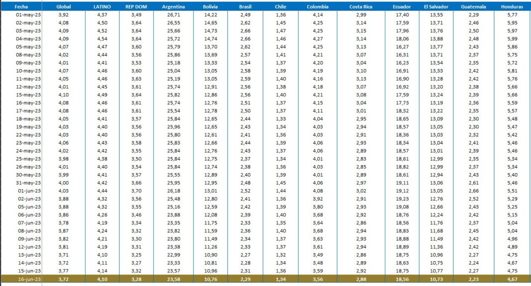 El riesgo país de Honduras se ubica en 467 puntos básicos (4,67%), al 16 de junio, una mejora de 49% respecto a su nivel máximo en la presente administración alcanzado el 5 de junio del año pasado cuando llegó a estar en 916 pp((9,16%), según el indicador EMBI de JP Morgan.