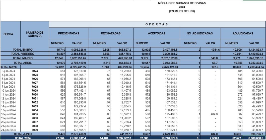 Subasta de divisas adjudica el 36% de la demanda este mes de junio